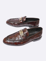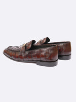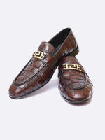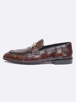 Step into luxury with the Two Toned Woven Buckle Loafer, a premium leather shoe featuring a rich brown woven texture and a striking gold-tone buckle. This slip-on design blends sophistication with durability, offering exceptional comfort...