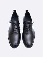 Handcrafted from premium smooth black leather, this lace-up features a clean, minimalist silhouette that reflects classic Italian tailoring. The precision-cut panels and refined stitching create a polished finish, while the arch-support cushioned insole ensures superior comfort, balance, and reduced foot fatigue throughout the day.