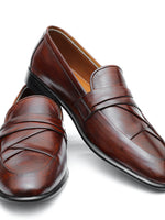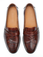 The Siena Loafer is a celebration of texture and artisanal skill. The classic penny loafer silhouette is elevated by an intricately woven saddle, creating a subtle yet captivating focal point. Handcrafted from burnished tan leather that glows with a warm patina, this shoe embodies a relaxed yet discerning charm. It’s a piece for the cultured man who finds beauty in the details and elegance in craftsmanship.
